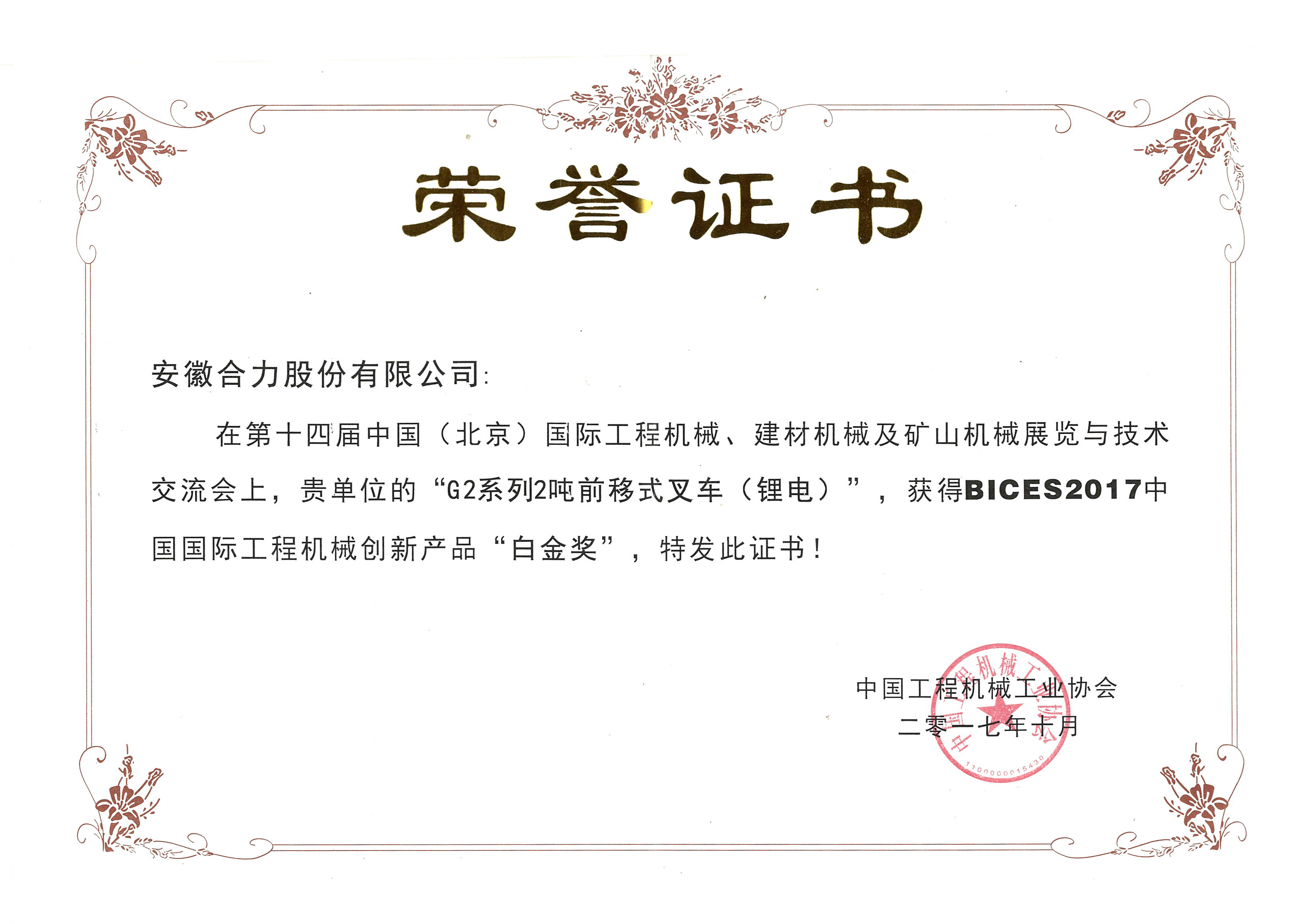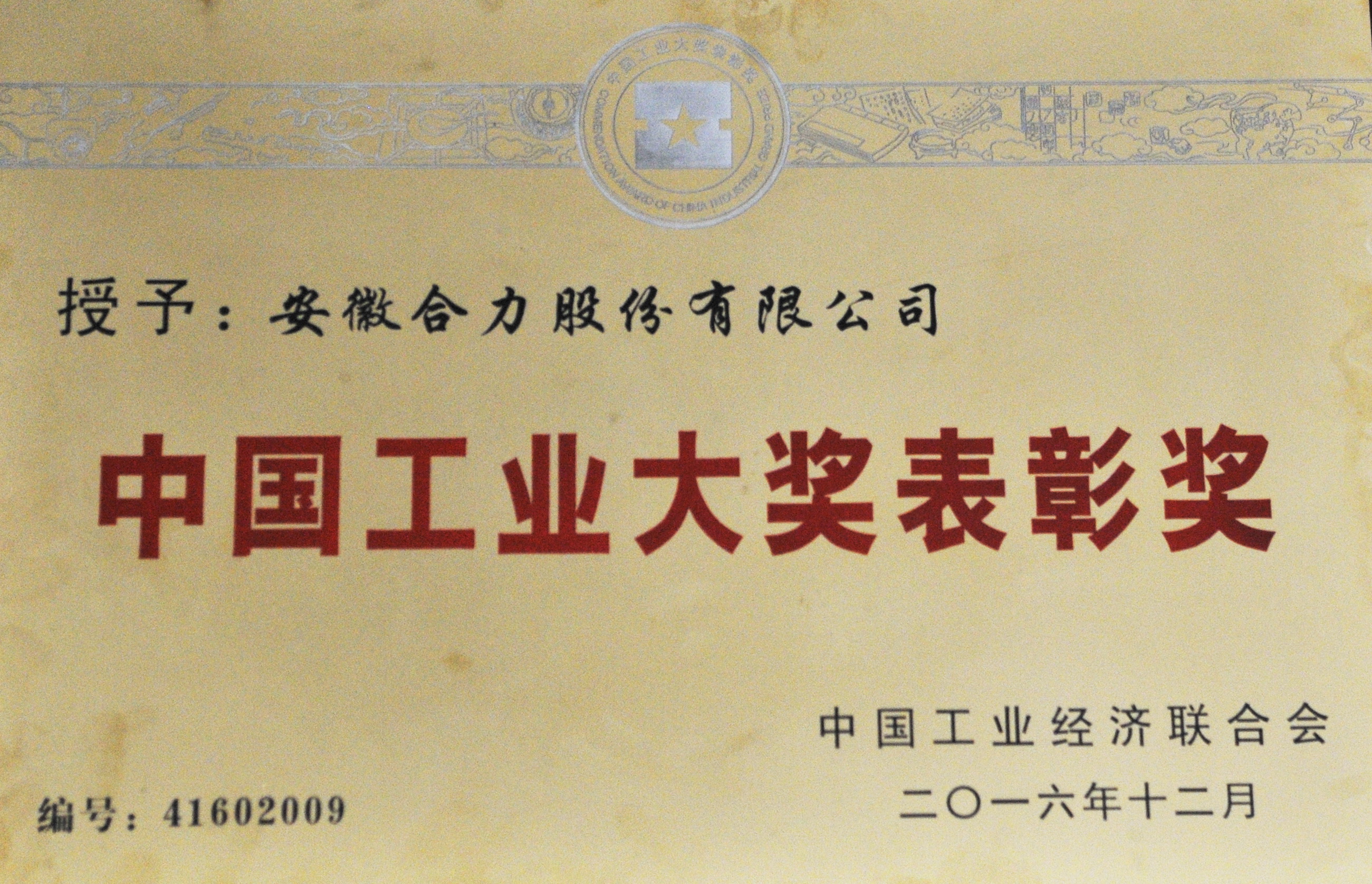 2016 安徽合力股份有限公司中國工業(yè)大獎表彰獎