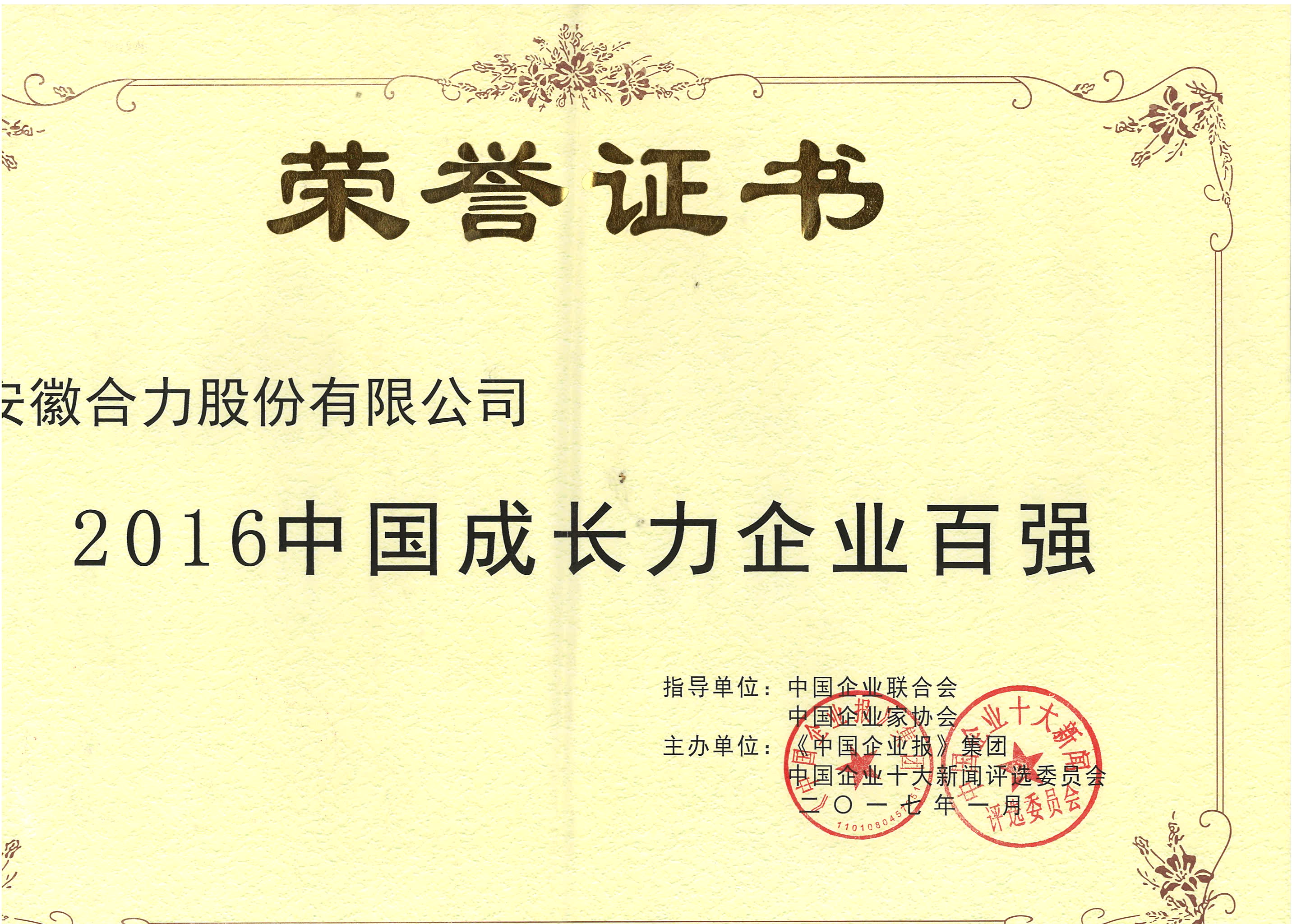 2016中國成長力企業(yè)百強
