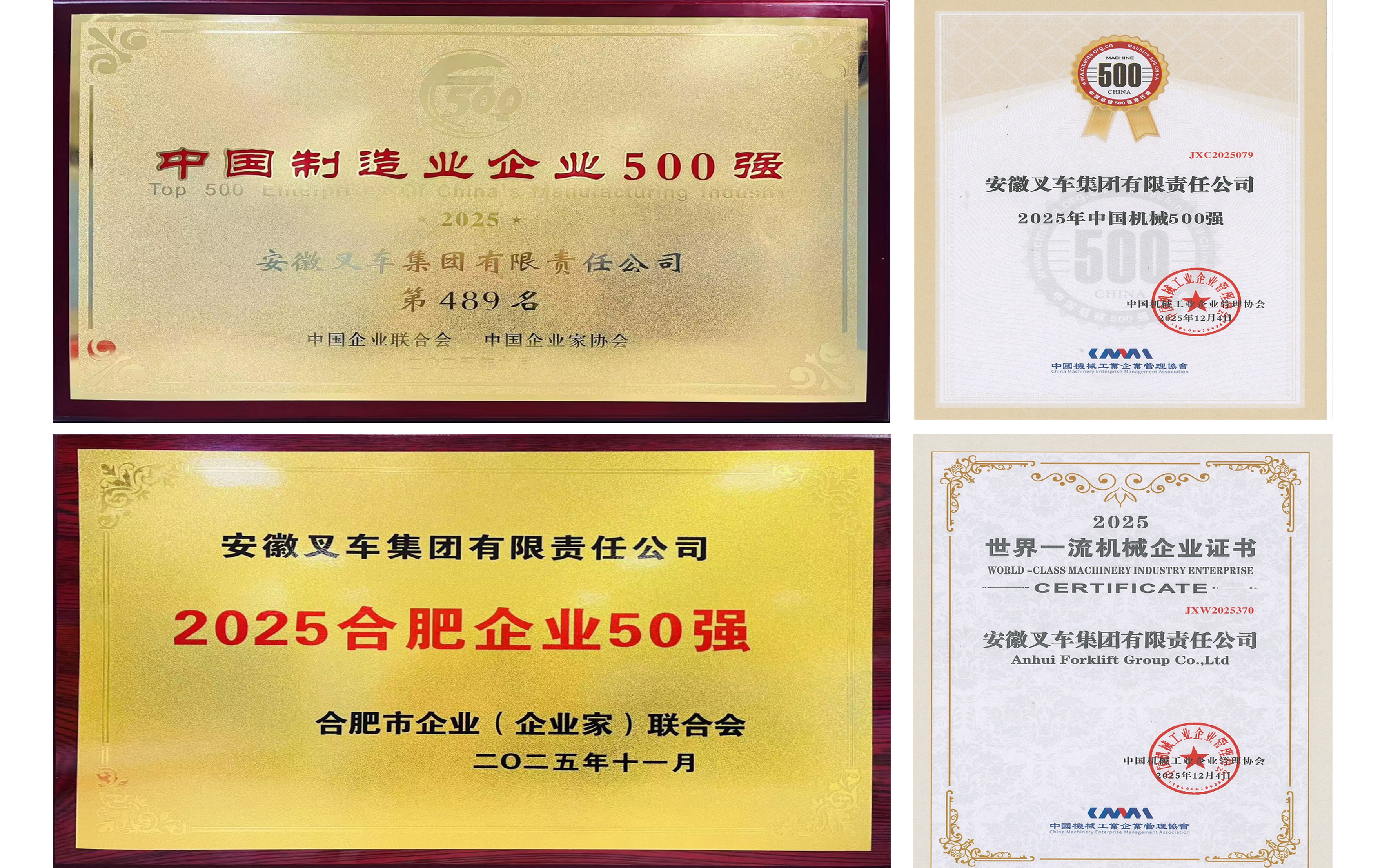 查看詳情 >安徽叉車集團榮登“2025中國制造業(yè)企業(yè)500強” 榜單